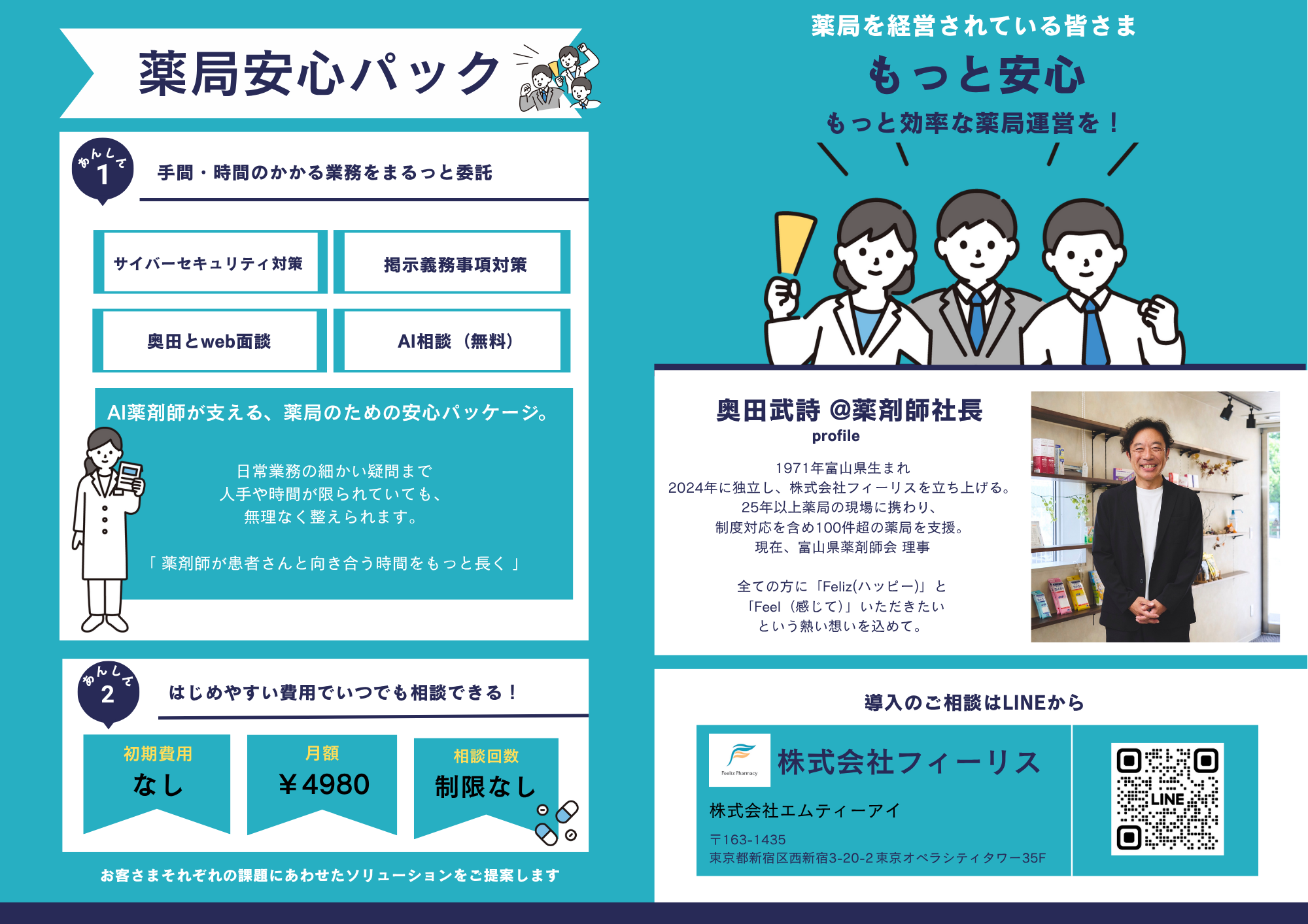 初期費用・更新料なし/薬局単位で契約